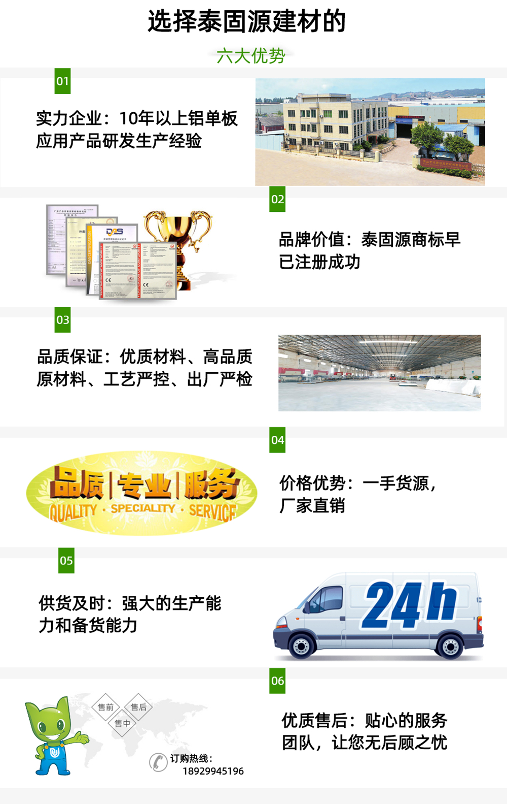 佛山市泰固源裝飾材料有限公司是一家研發(fā)、生產(chǎn)鋁單板和陶土板、航空板三大系列的大型企業(yè)。公司成立于二零一零年,鋁單板占地面積10000平米,陶土板占地面積300畝。擁有環(huán)境優(yōu)雅、寬敞、明亮的現(xiàn)代化標(biāo)準(zhǔn)廠房及辦公大樓。位于佛山市南海區(qū)里水勝利工業(yè)園,地理位置優(yōu)越。我司技術(shù)實(shí)力強(qiáng)大,生產(chǎn)管理科學(xué)嚴(yán)謹(jǐn)。它在引進(jìn)意大利生產(chǎn)設(shè)備的基礎(chǔ)上,立足于持續(xù)革新制造工藝,使各項(xiàng)技術(shù)指標(biāo)遠(yuǎn)遠(yuǎn)超出國家及行業(yè)標(biāo)準(zhǔn),跨入先進(jìn)水平行列,在經(jīng)濟(jì)和社會(huì)效益方面取得了巨大的成就。我司自主研發(fā)、生產(chǎn)泰固源鋁單板,泰固源陶土板這兩大系列產(chǎn)品,多年來,經(jīng)過公司全體員工的通力協(xié)作,我們的品牌產(chǎn)品(泰固源,辛源牌)得到業(yè)內(nèi)人士一致認(rèn)可。銷售網(wǎng)點(diǎn)遍布國內(nèi),并與諸多國內(nèi)外客戶建立了長期友好的合作關(guān)系,產(chǎn)品銷往國內(nèi)并走向世界